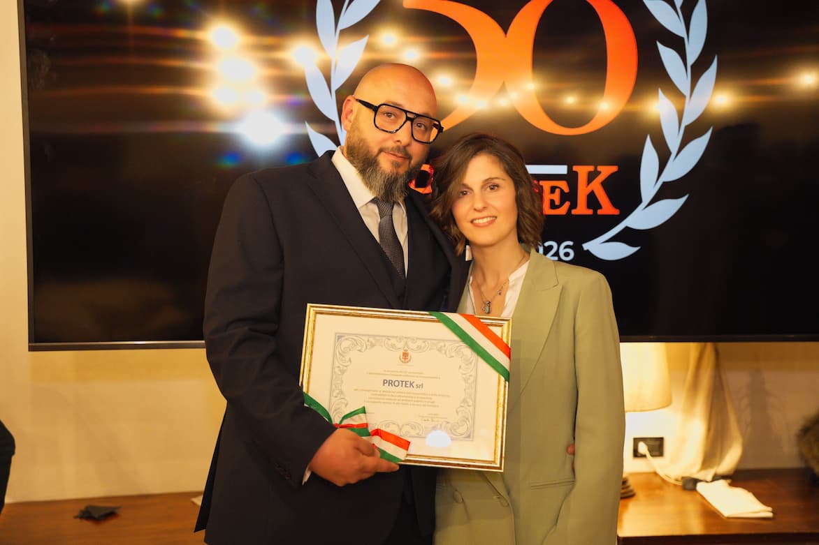 PONTASSIEVE. Il tessuto produttivo della Valdisieve celebra un traguardo di rilievo con il cinquantesimo anniversario della PROTEK, realtà storica del comparto dell’impiantistica e della sicurezza. In occasione dei festeggiamenti per il mezzo secolo di attività, l’amministrazione comunale ha reso omaggio all’azienda con la consegna di una targa commemorativa, riconoscendo ufficialmente il valore di un’impresa che ha saputo coniugare visione imprenditoriale ed un profondo legame con la comunità locale. Fondata nel 1976, con un focus specifico sulla sicurezza e l’impiantistica, l’azienda ha vissuto un’espansione costante che l’ha portata a operare stabilmente in tutto il centro Italia. Accanto alla sede storica situata a pochi chilometri da Firenze, la struttura si è rafforzata nel tempo con l’apertura delle filiali a Borgo San Lorenzo e Scandicci. «Cinquant’anni che misurano la capacità di chi ha saputo trasformare un’idea in realtà a servizio della comunità», ha detto il sindaco di Pontassieve, Carlo Boni.