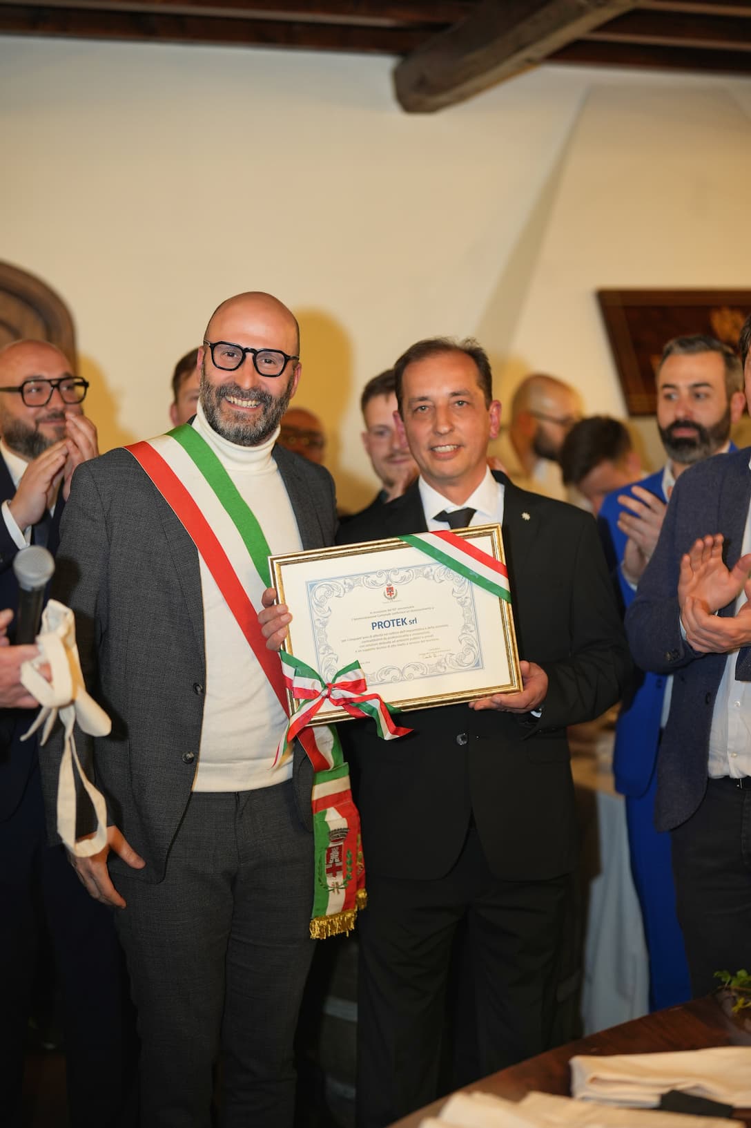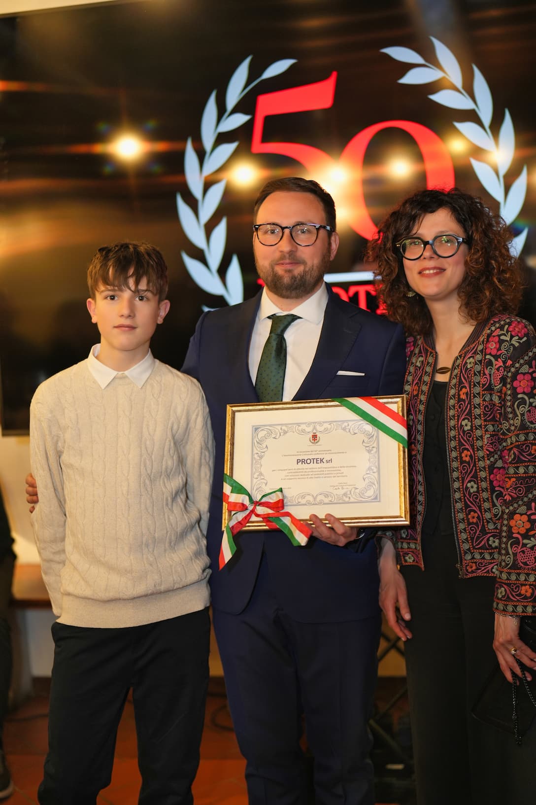Mezzo secolo di PROTEK. La targa del Comune «A servizio della comunità»
